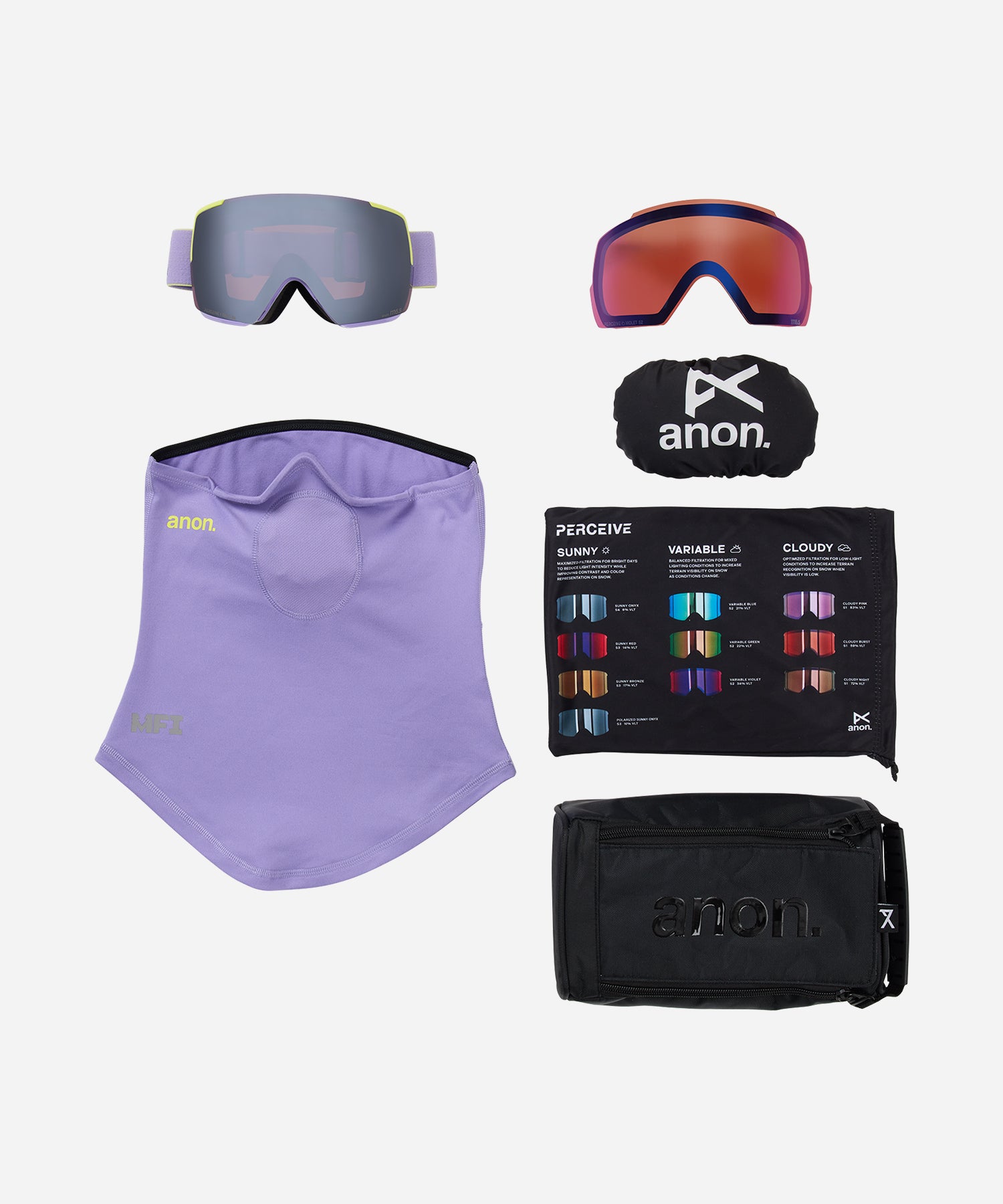 Magna-Tech® quick lens-change technology leverages powerful magnets to let you change lenses quickly. The Anon M5 includes a Toric Injected Perceive optics lens for high-contrast vision and terrain-defining clarity in the colour Sunny Onyx. It’s protected by a hydrophobic and oleophobic coating, resisting smudges, scratches and moisture, all while ensuring the lens never fogs up. The Anon M5 also comes with a bonus Perceive Variable Violet low-light lens for cloudy days.